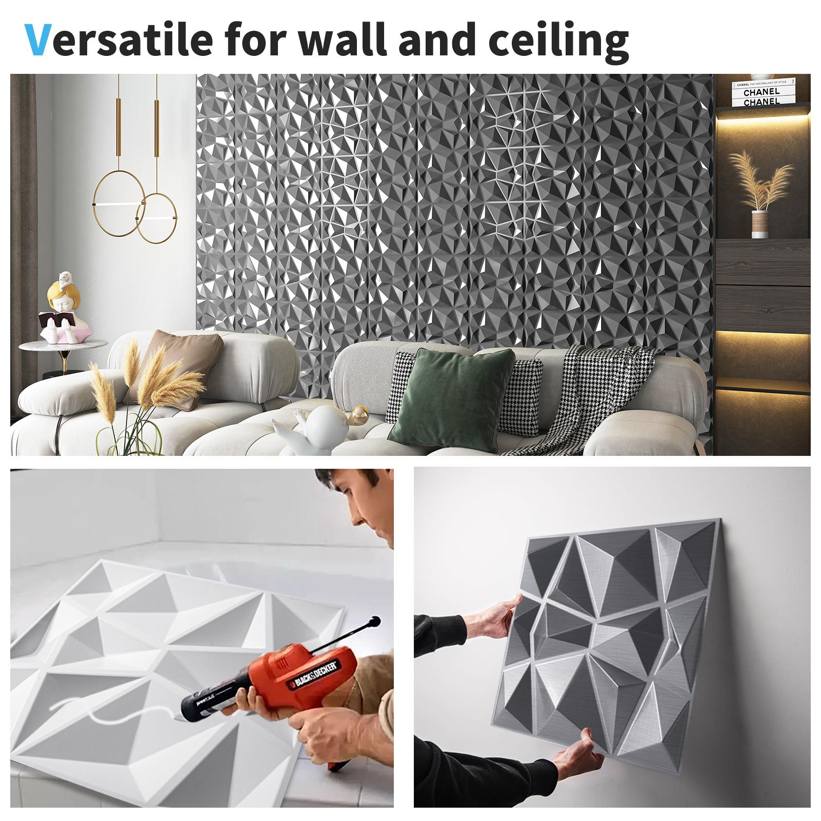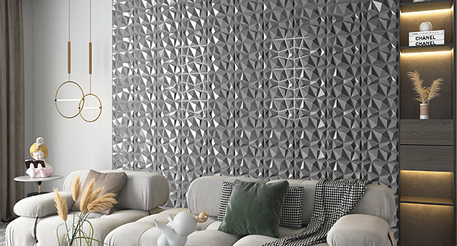 Each box contains 33 panels that can cover an area of 3 m² or 32 sq.ft. Fashionable glue on wall embossed 3D wall covering manufacturer direct, cheap price and good quality, can be used in exterior wall covering and interior wall design.