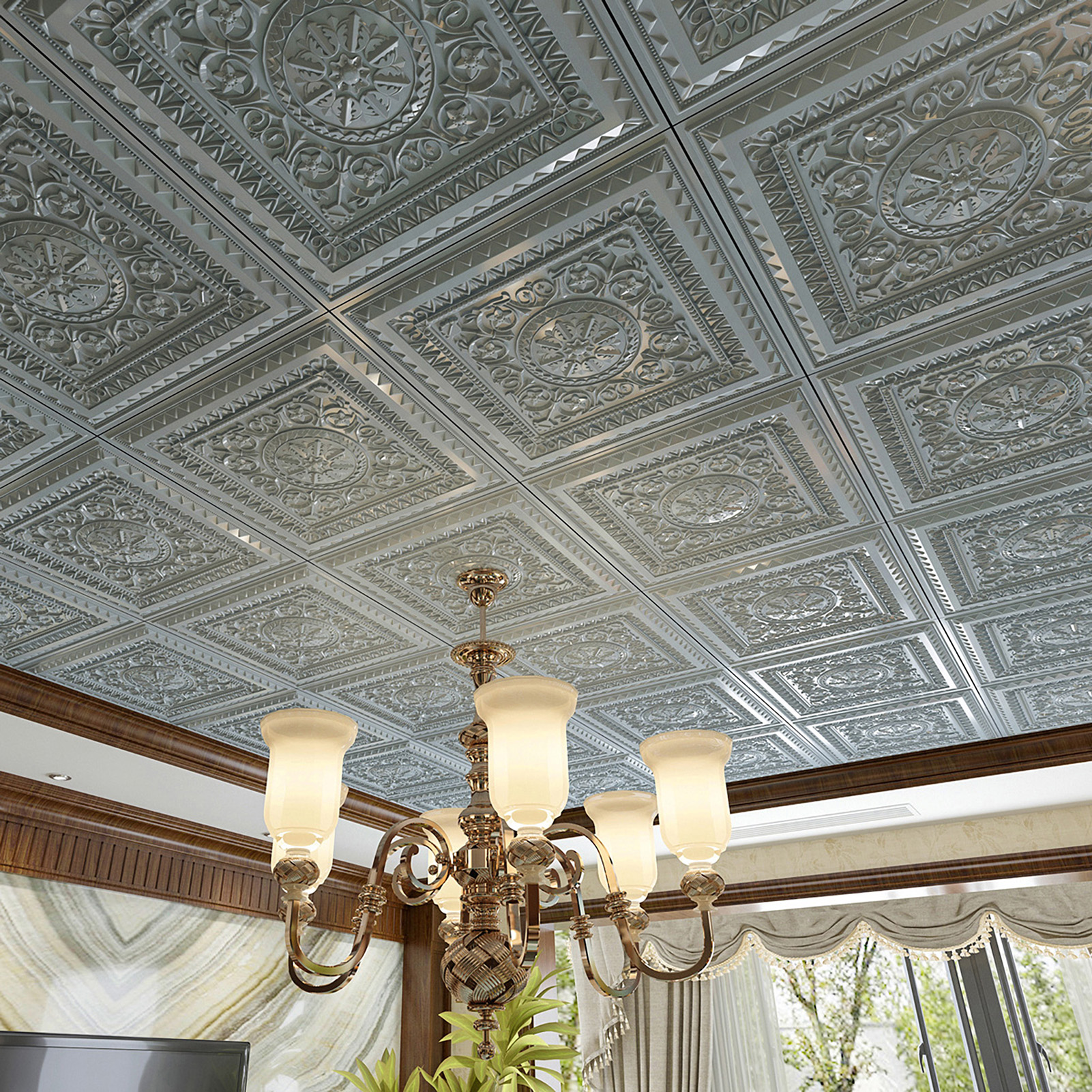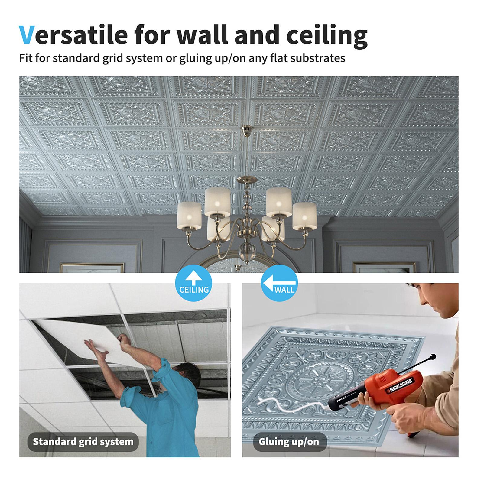 INSTALLATION-Easily lay into a standard 15/16" T-bar drop ceiling grid system or glued over any flat substrates