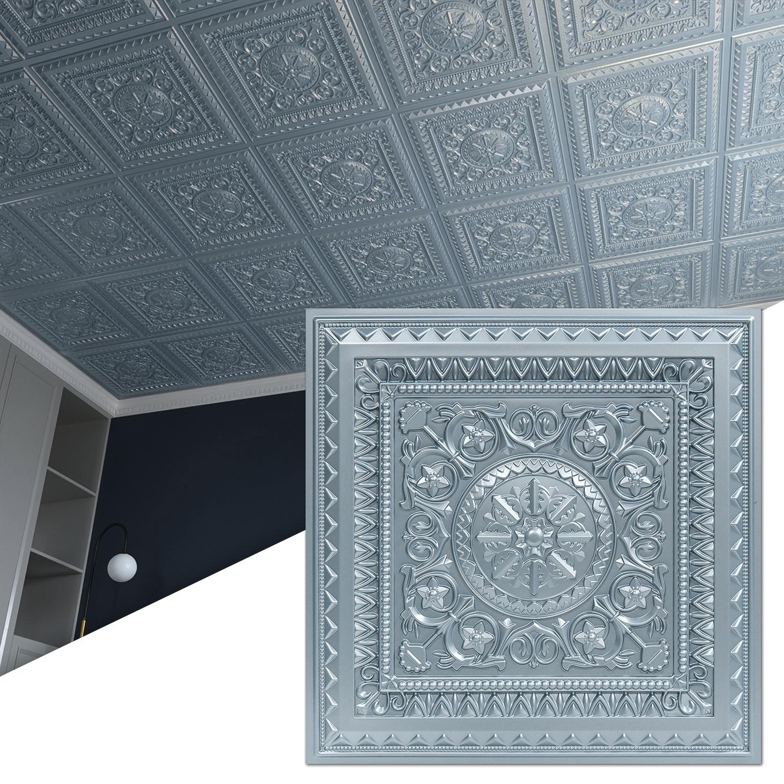 A10902GY48-Art3d Drop Ceiling Tiles 2x2, Glue-up Ceiling Panel, Fancy Classic Style in Gray