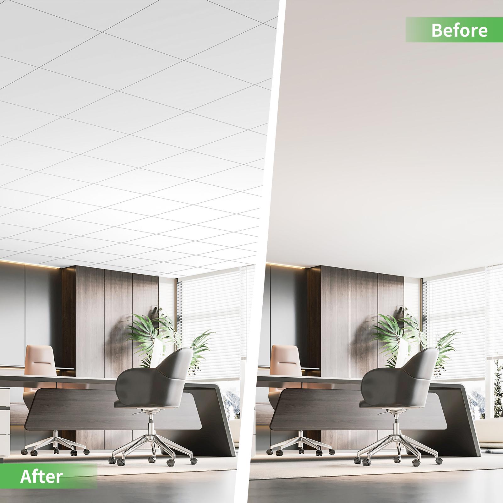 Art3d smooth PVC ceiling tile, made of virgin-grade PVC vinyl, which is extremely durable, is the best alternative to traditional mineral acoustic ceiling panels!