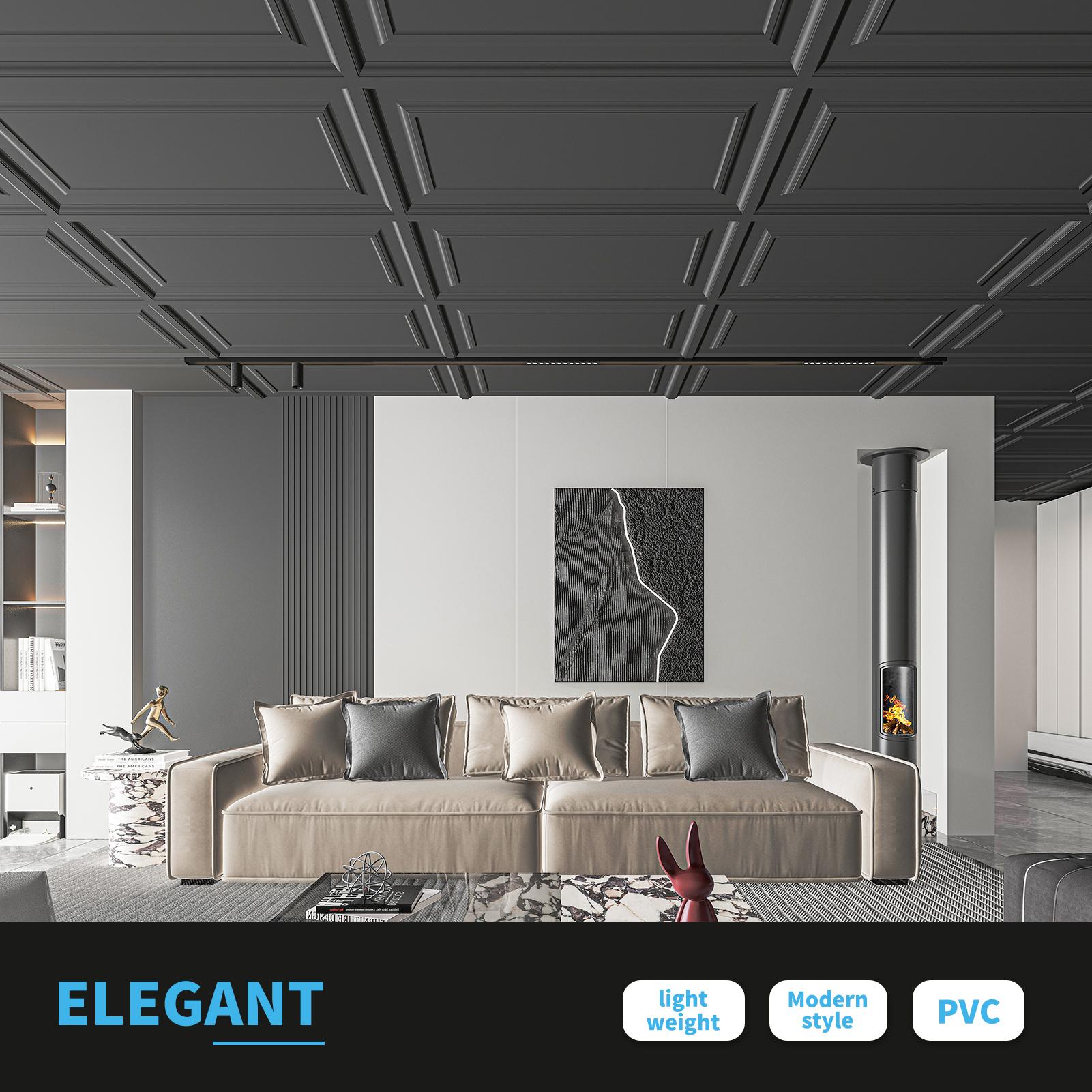 Material - Made from high-quality PVC, these ceiling tiles are not only durable and sleek but also waterproof and flexible, ensuring a perfect blend of functionality, resilience and aesthetics