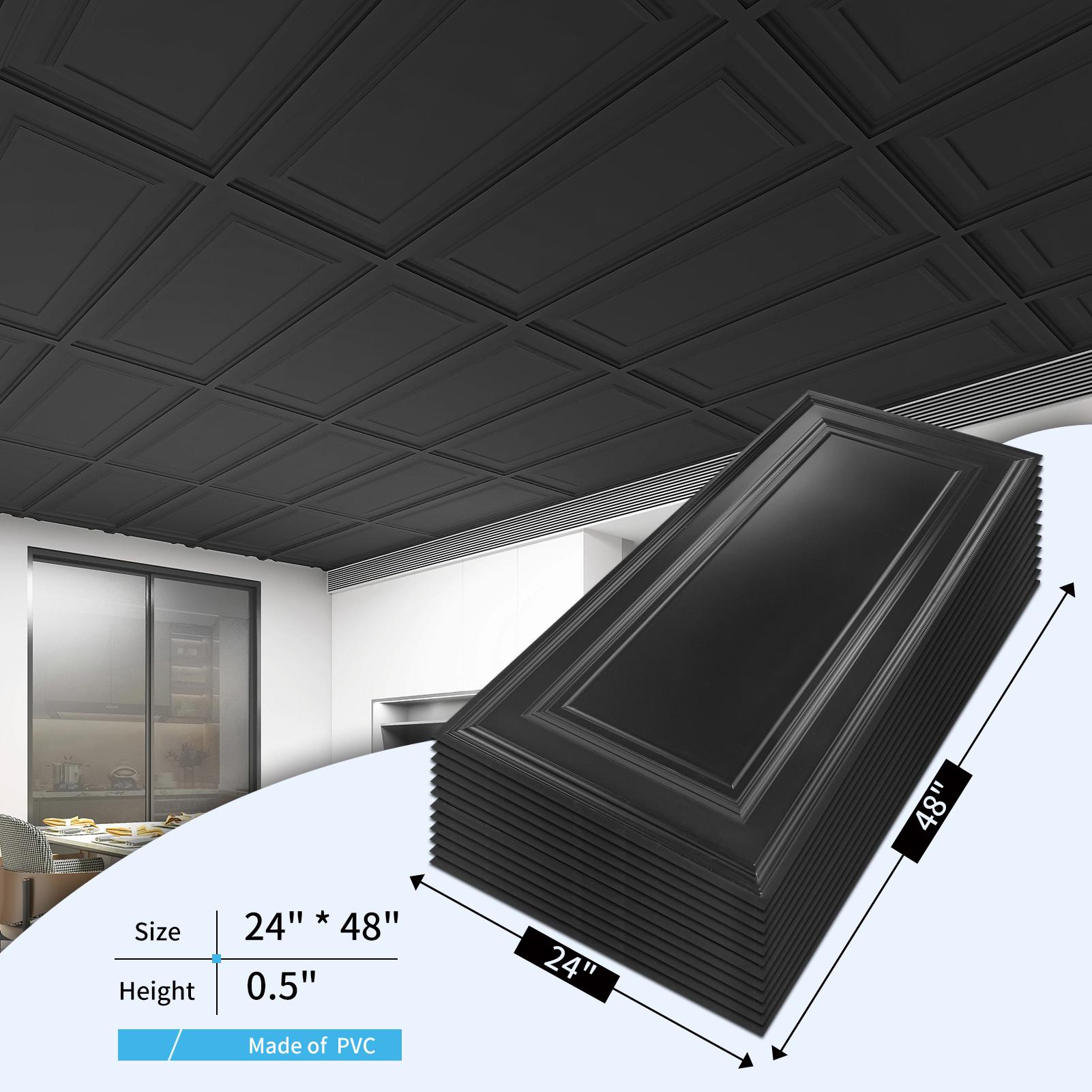 A10924BK12-Art3d 12-Pack Drop Ceiling Tiles 2x4 Ft, PVC Decorative Ceiling Covering Panels for Basement Kitchen Bathroom, 24x48 Inch, Cover 96 Sq. Ft, Smooth White