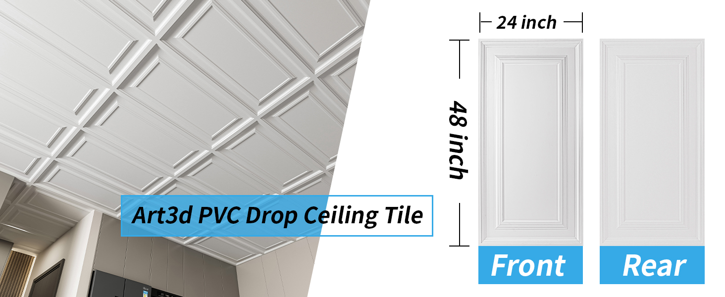 A10924WT12-Art3d 12-Pack Drop Ceiling Tiles 2x4 Ft, PVC Decorative Ceiling Covering Panels for Basement Kitchen Bathroom, 24x48 Inch, Cover 96 Sq. Ft, Smooth White