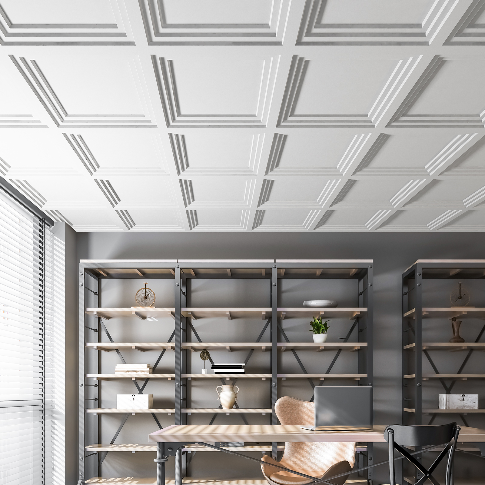 A10925WT12-Art3d 12-Pack 24×24 Inch PVC Waterproof Drop Ceiling Tiles for Home Décor - 2x2 ft 3D Modern Ceiling Panel for Suspended Grid, White