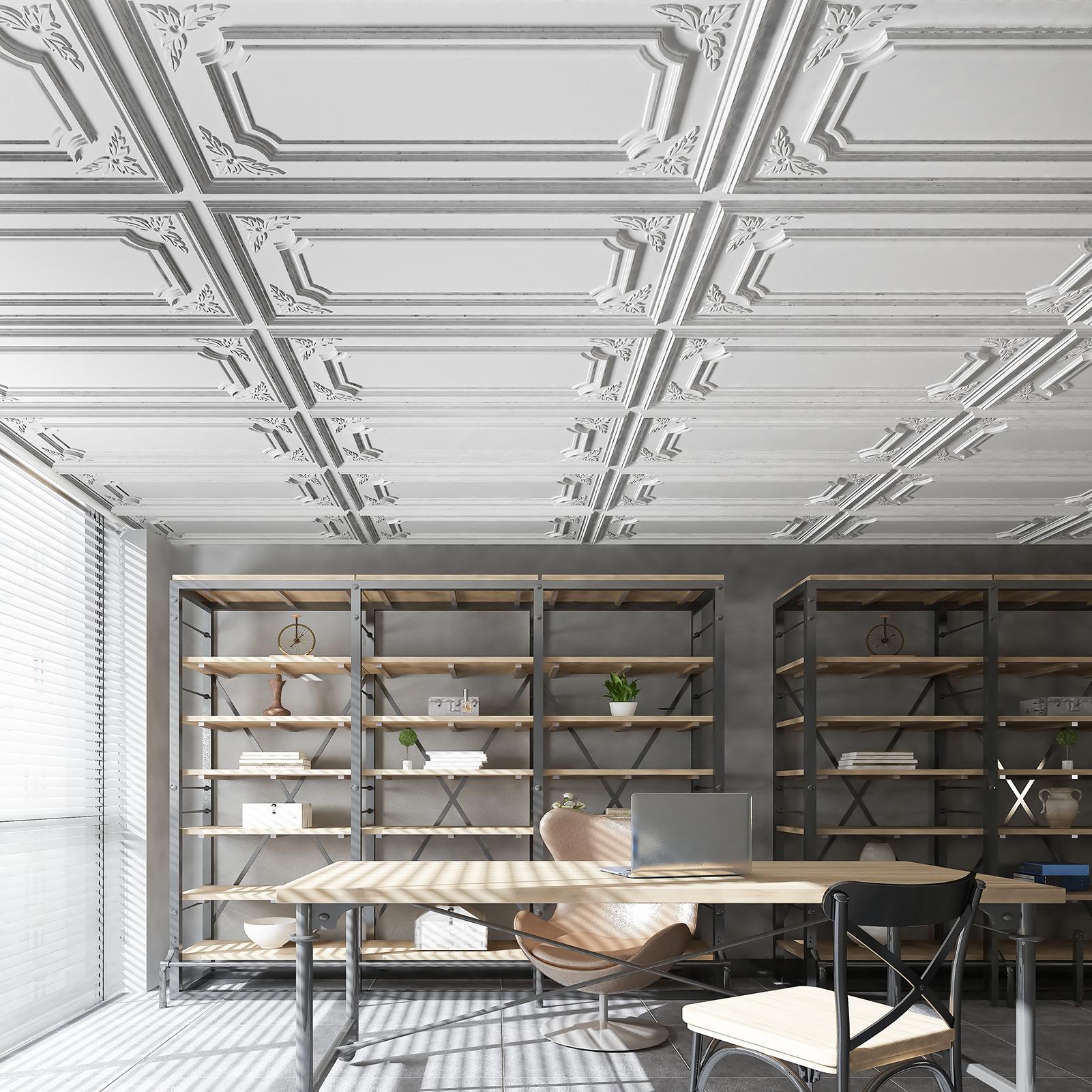 Pack Size - Pack of 12 ceiling tiles with size 2ft x 4ft, covering 96 sq.ft. 3D pattern with raised design makes our ceiling panels more eye-catching.