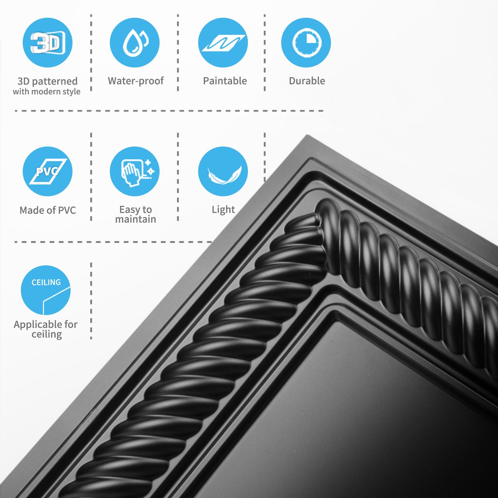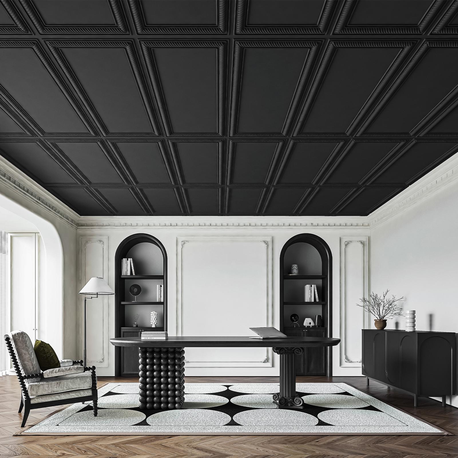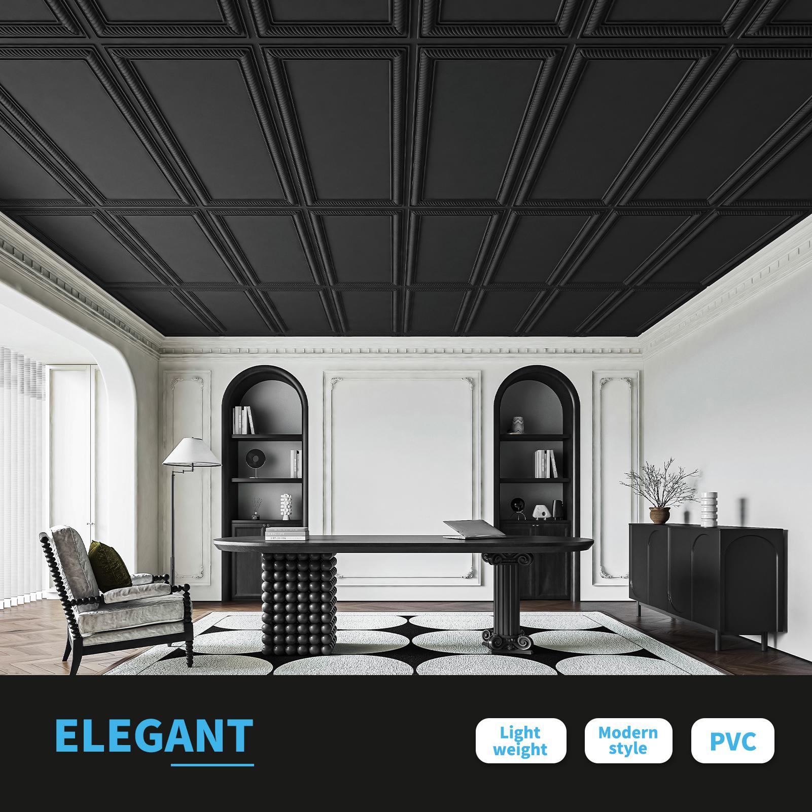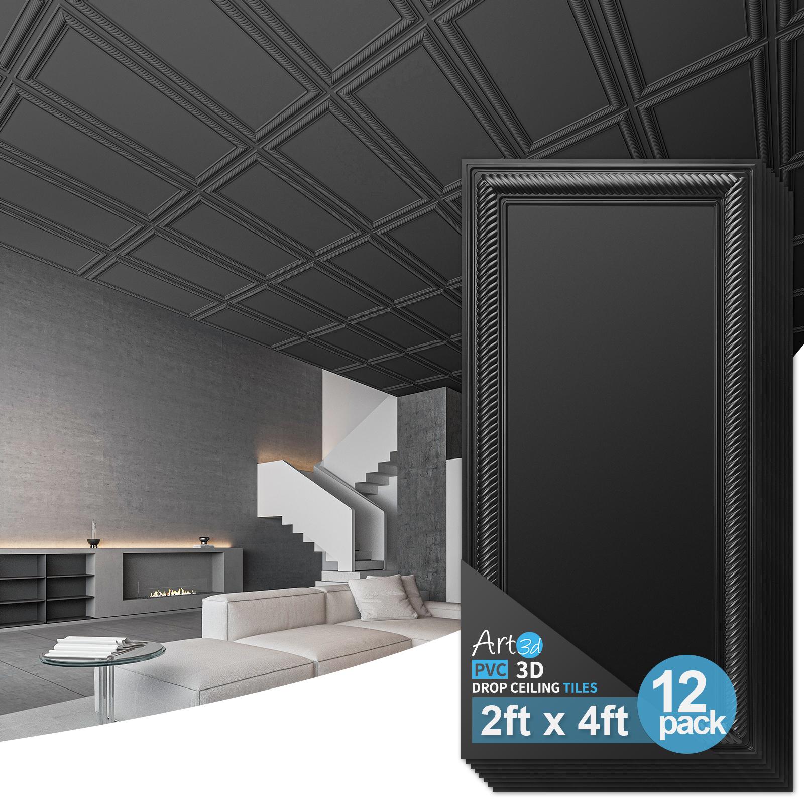 A10951BK12-Art3d Drop Ceiling Tiles 24x48, Decorative PVC Ceiling Panels, Waterproof Rustproof and Durable 12-Pack, Glue Down, Rectangular Black