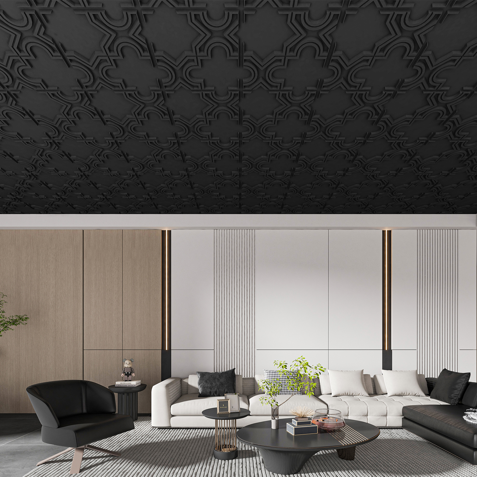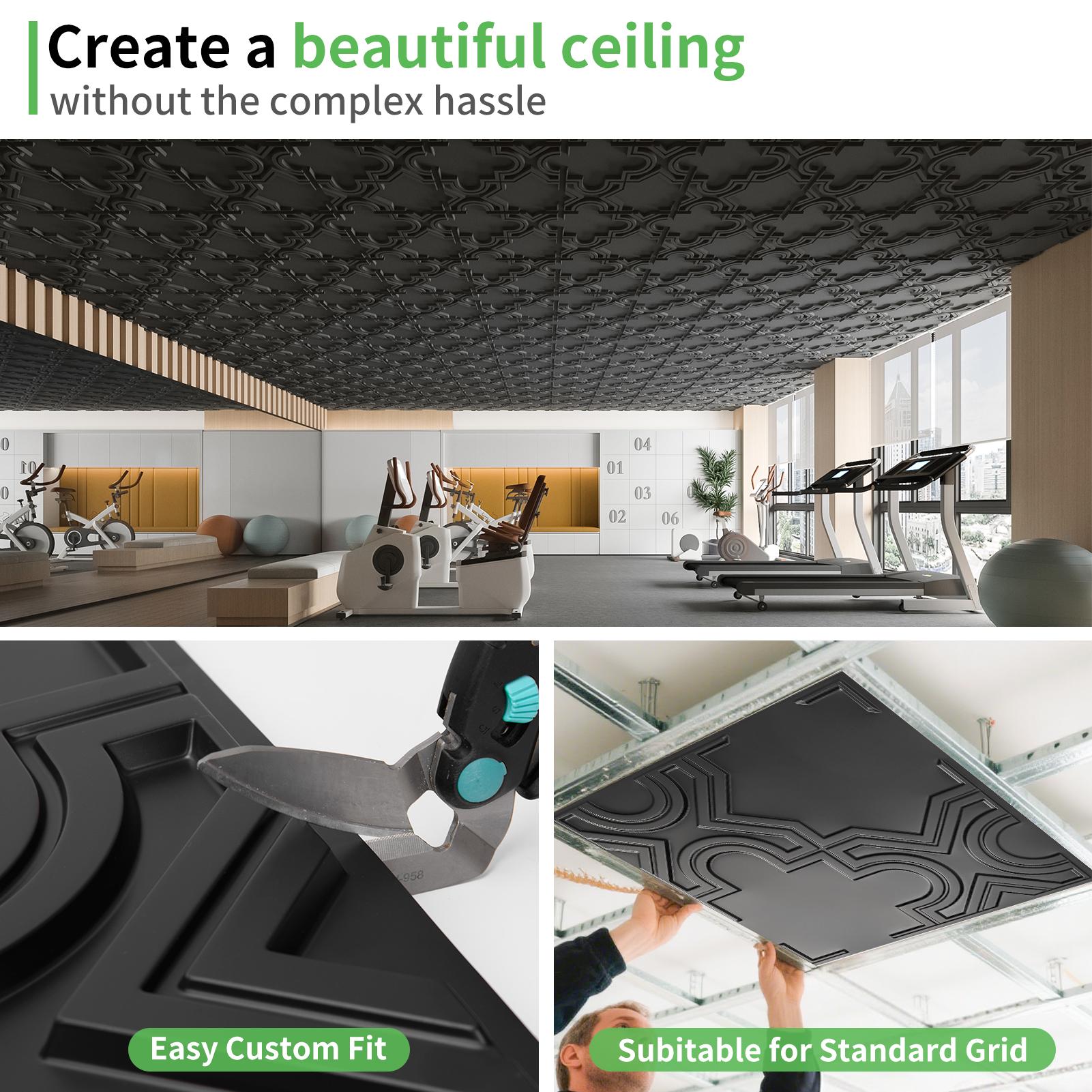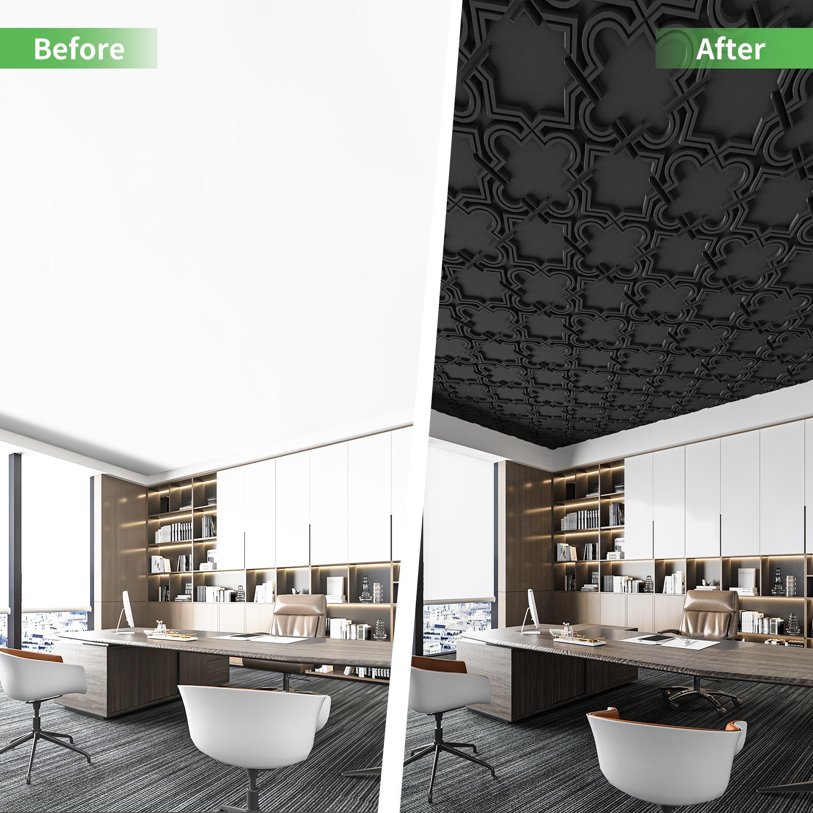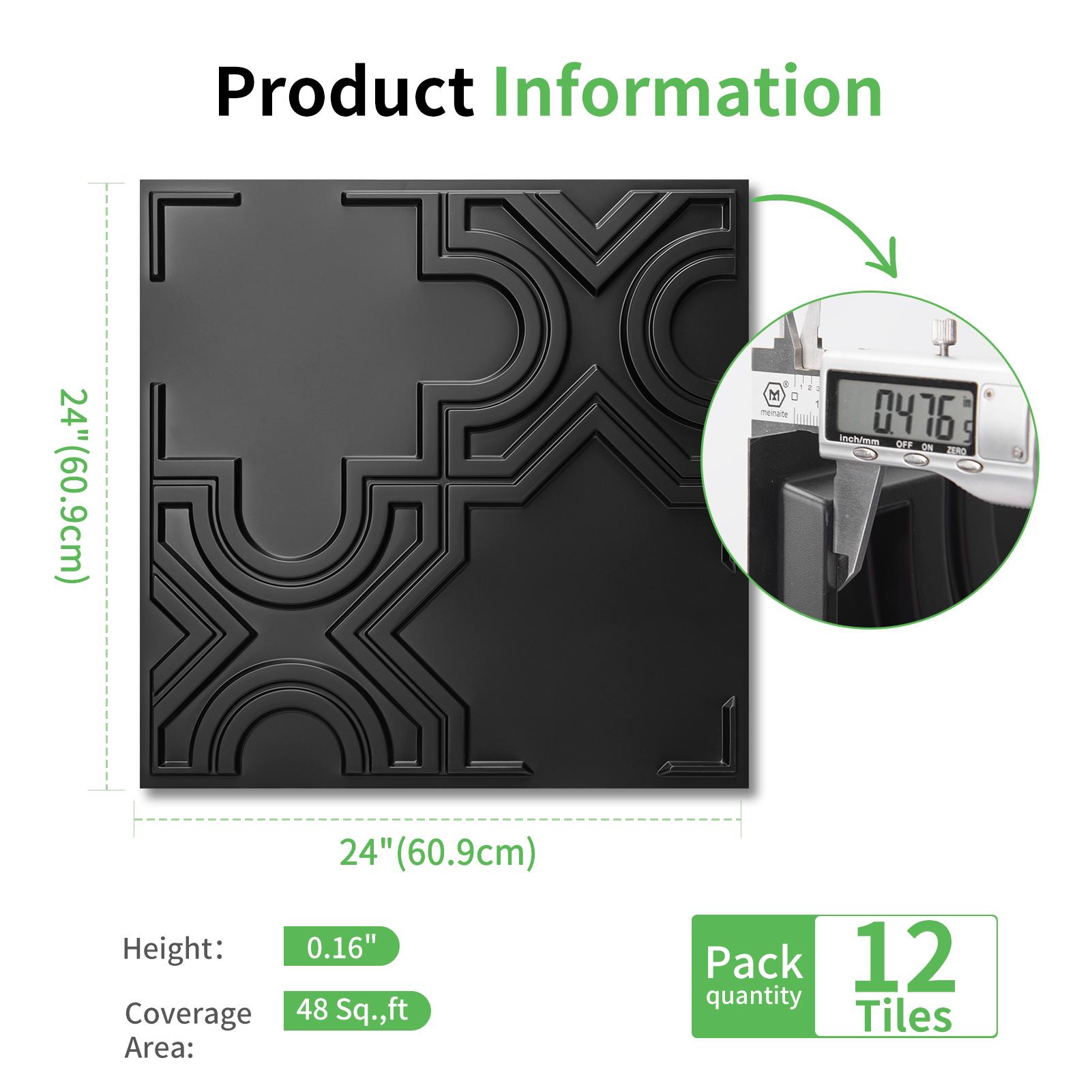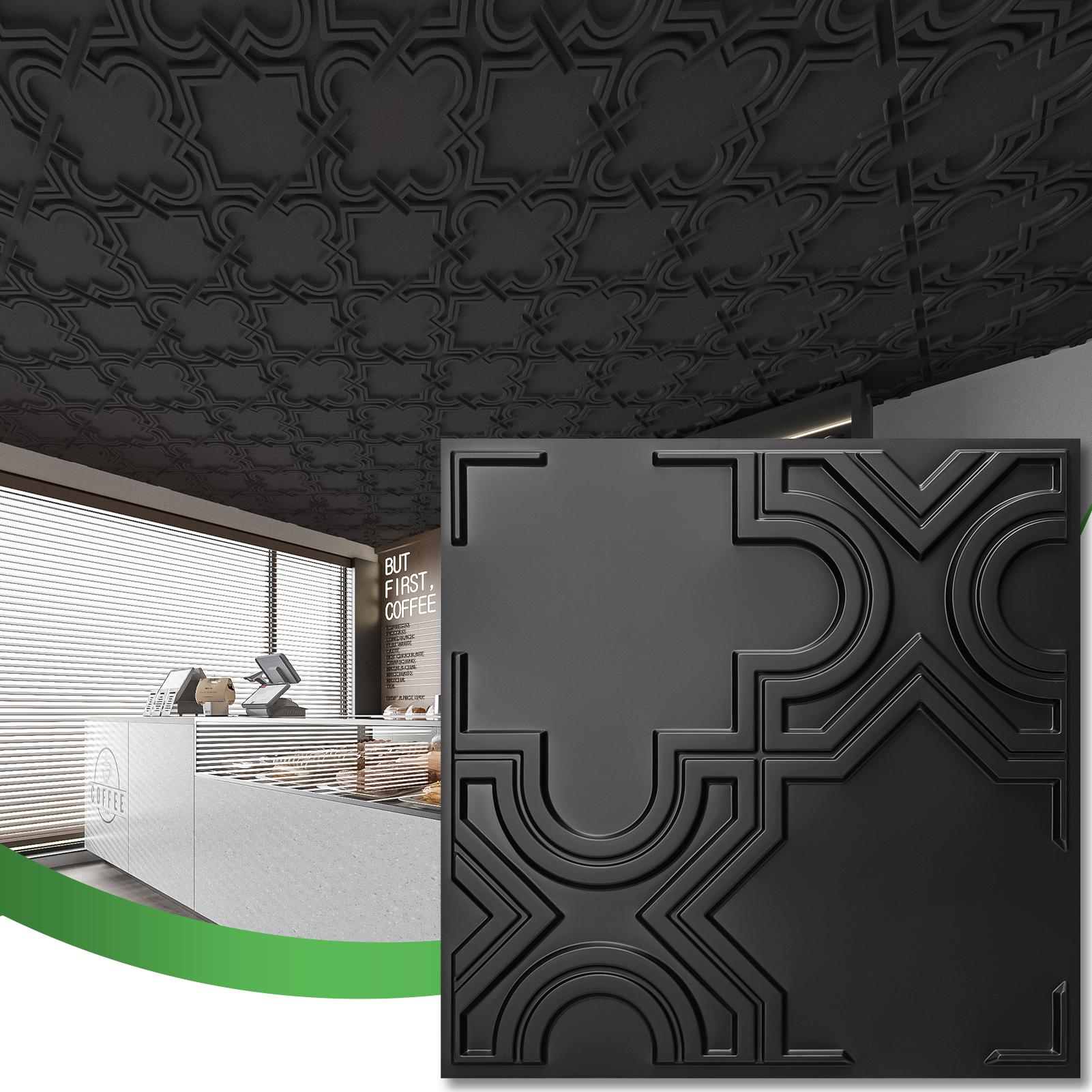 A10956BK12-Art3d 12-pack Square Drop Ceiling Tile 2ft x 2ft, PVC Ceiling panel 24 x 24in.