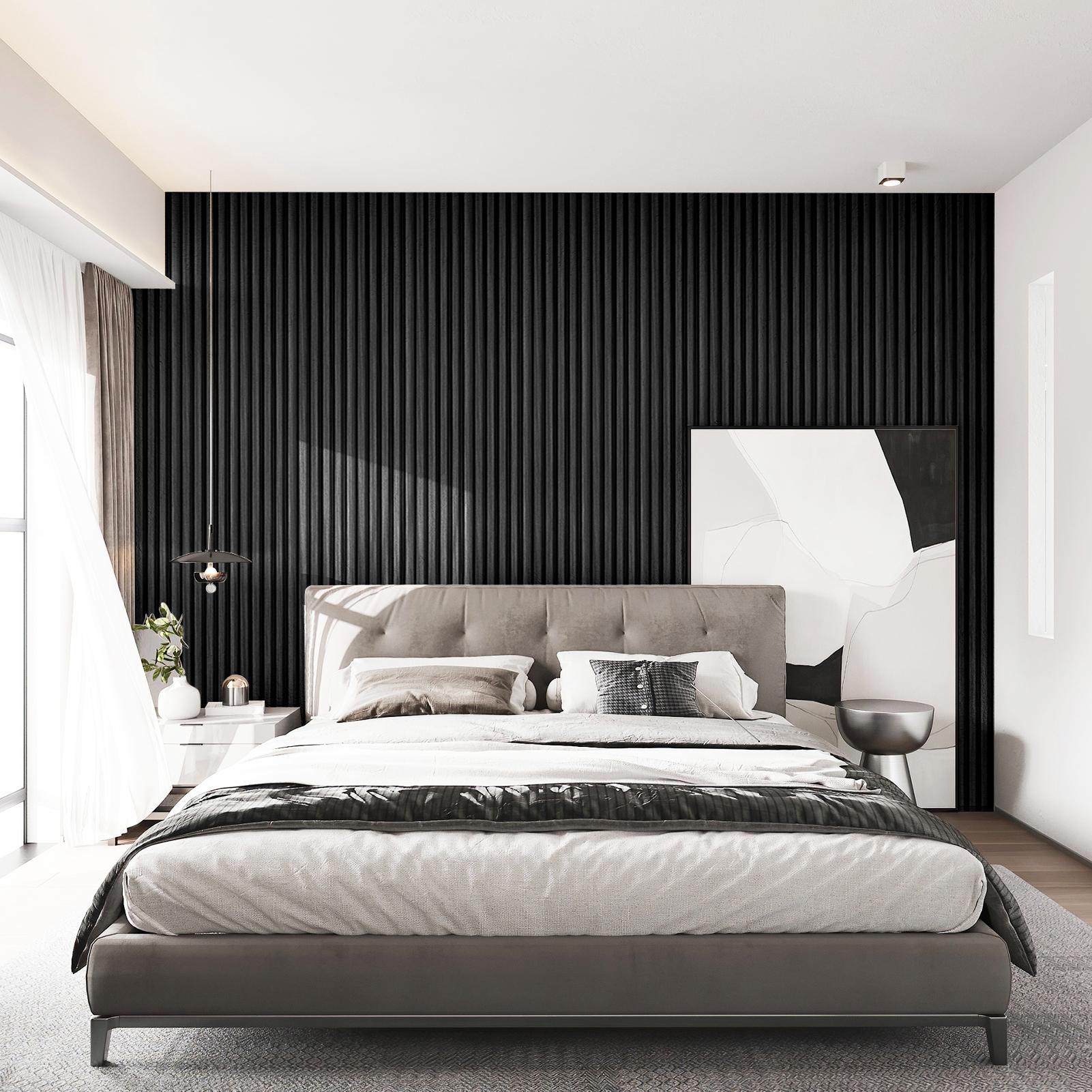 A30105MB08-Art3d Slat Wall Panels, WPC Soundproof 3D Wall Paneling for Interior Wall Decor, TV Background, 8-Pack 96 x 6 in. Black