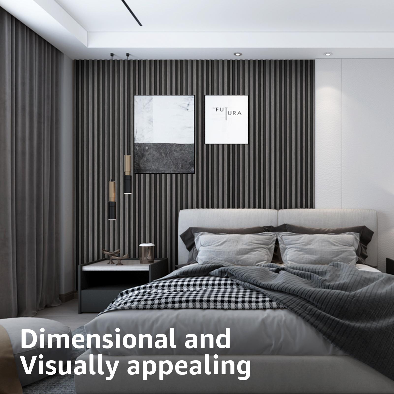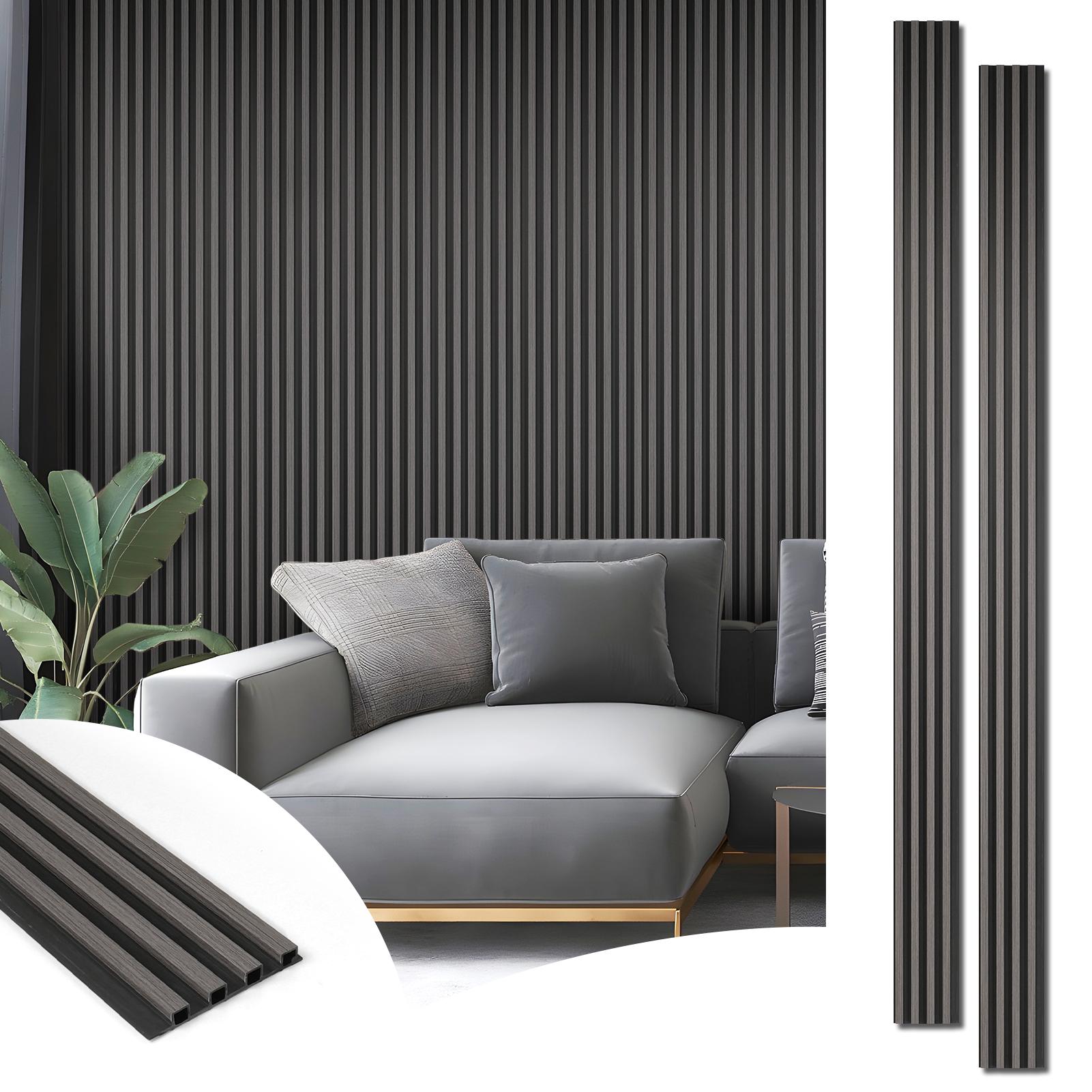 A30301GY08-Art3d 8-Pack WPC Wood Slat Wall Panel for Interior Wall Décor, 3D Wood Fluted Acoustic Wall Paneling for Living Room Bedroom Home & Office Accent Wall Decor - 96 x 6 Inch Grey
