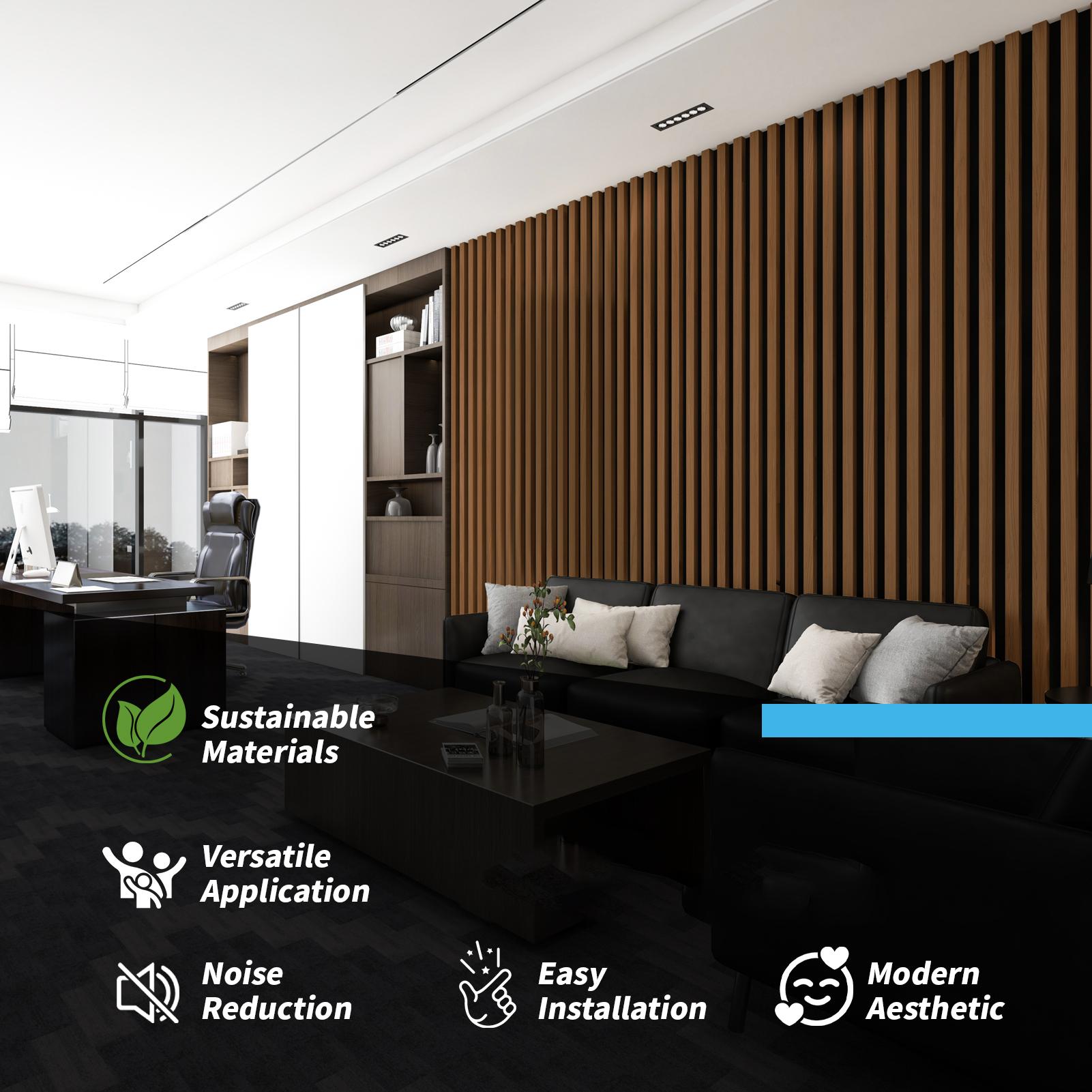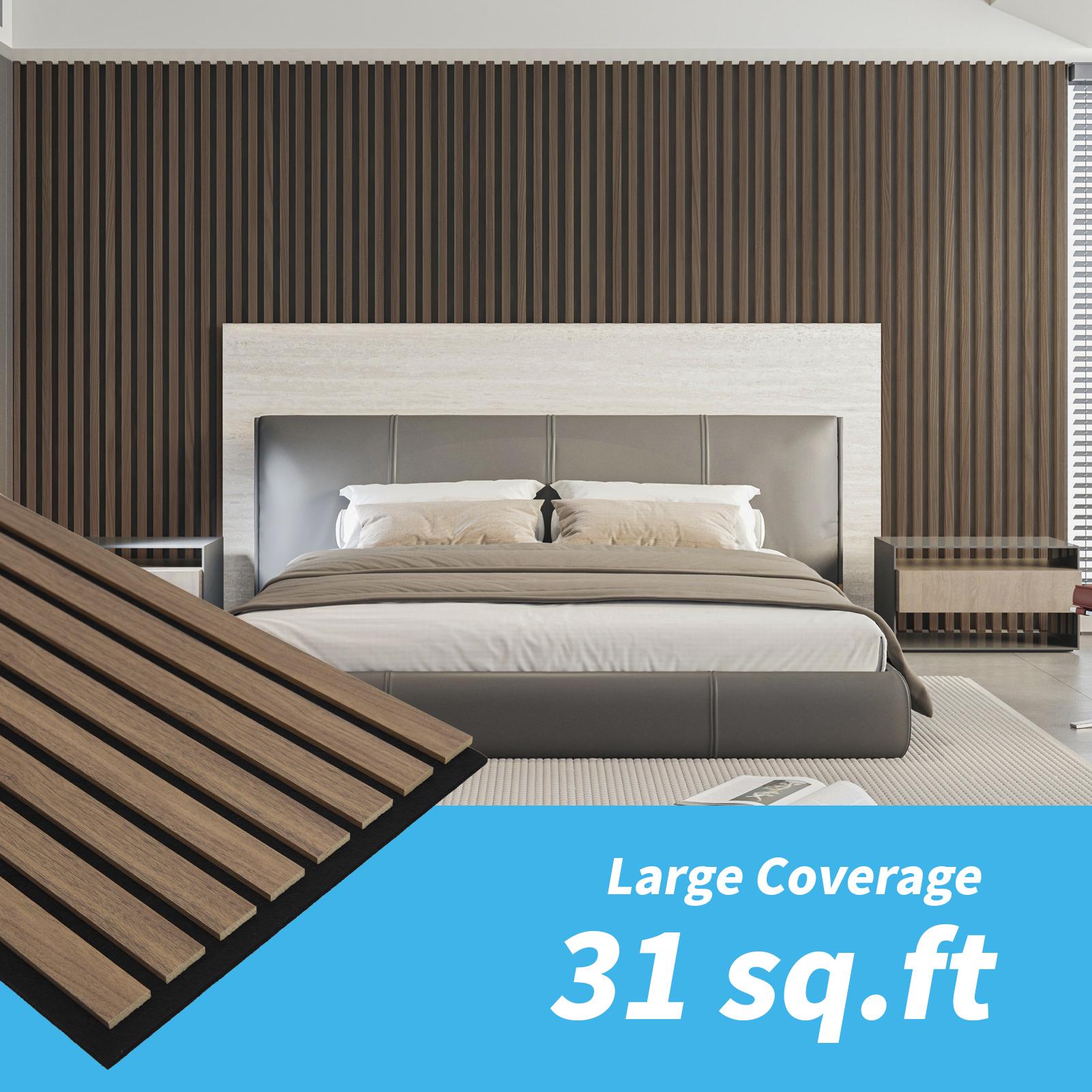 A31733DW04-Pack 12" x 93" Soundproof Wood Slat Panels, 31 sq.ft Acoustic Wall Panels, 3D Wall Panels with Wood Slat Design, Decorative Wood Wall Panel for Accent Walls-Deep Walnut
