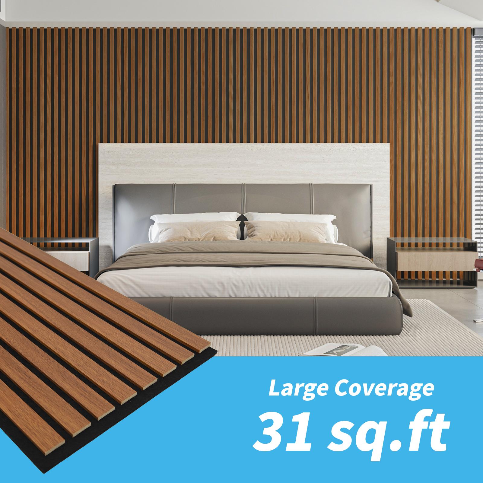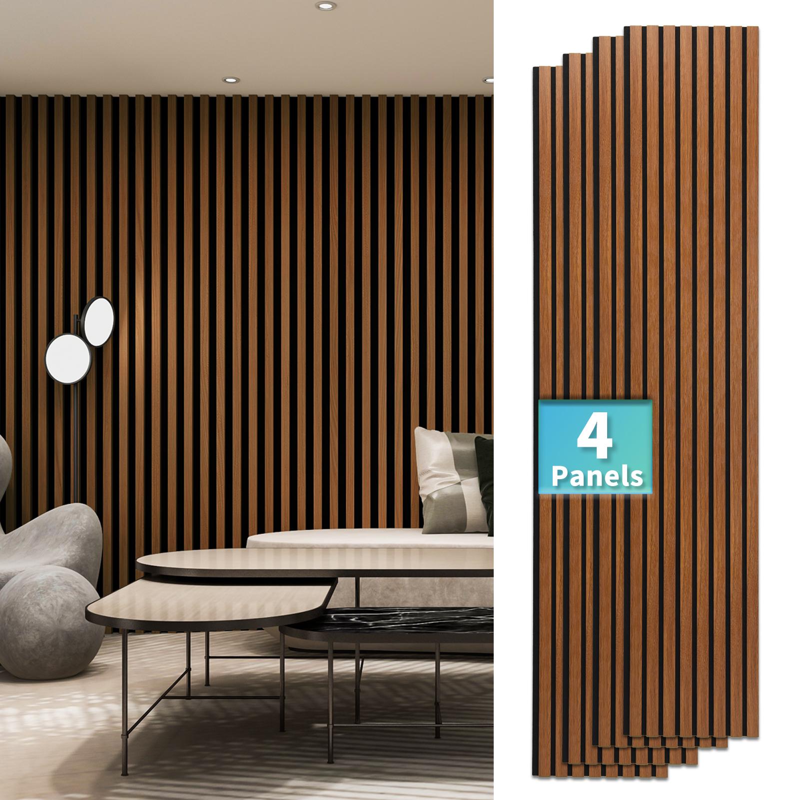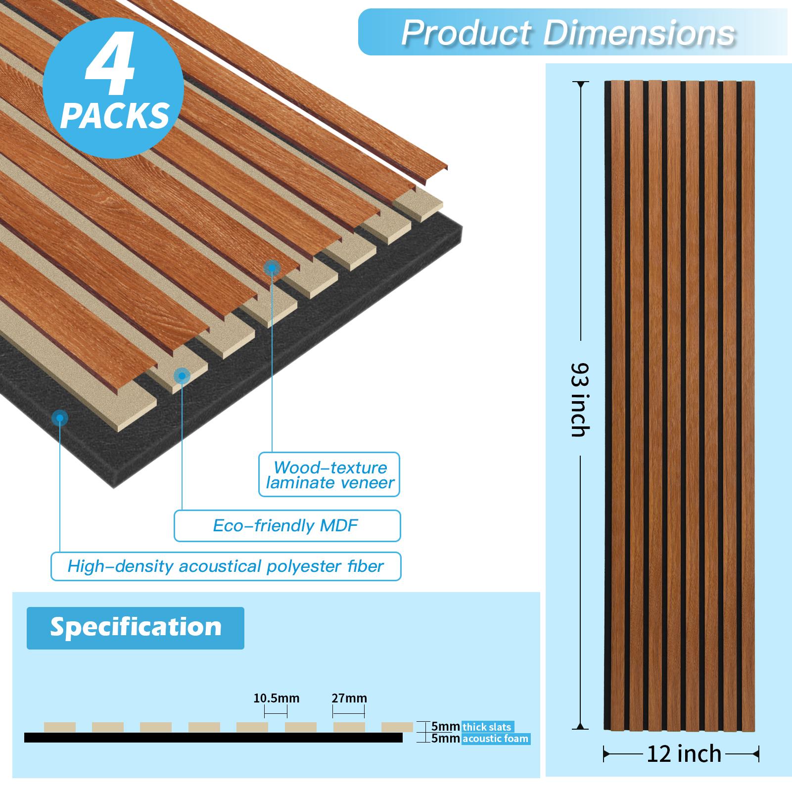 A31733WA04-Pack 12" x 93" Soundproof Wood Slat Panels, 31 sq.ft Acoustic Wall Panels, 3D Wall Panels with Wood Slat Design, Decorative Wood Wall Panel for Accent Walls-Deep Walnut