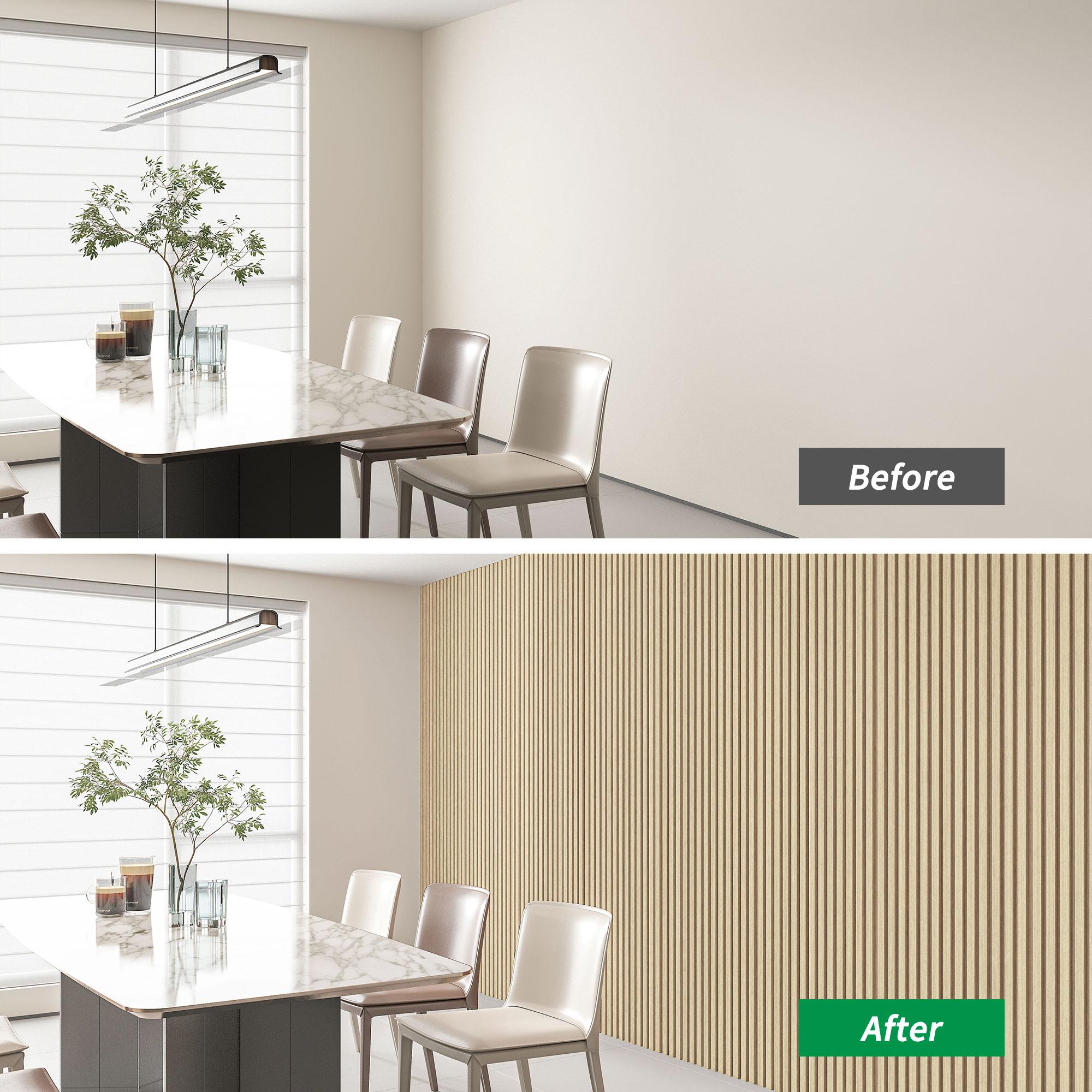 Premium MDF : Made of durable MDF, these wood slat wall panels are sturdy, low-emission, and safe for indoor use, ensuring long-lasting beauty without harmful chemicals