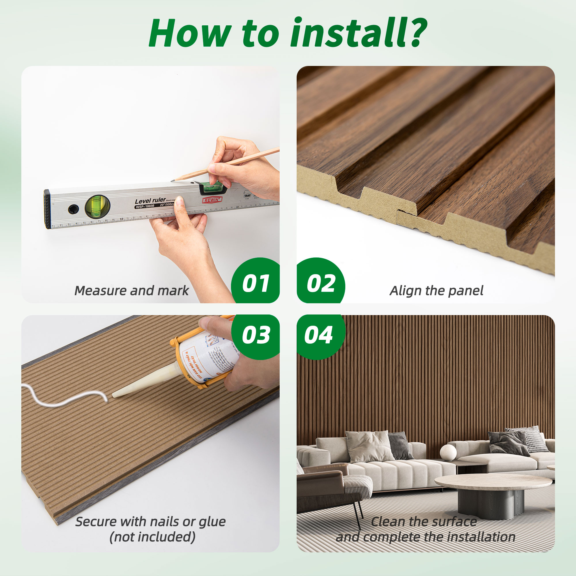 Premium MDF : Made of durable MDF, these wood slat wall panels are sturdy, low-emission, and safe for indoor use, ensuring long-lasting beauty without harmful chemicals