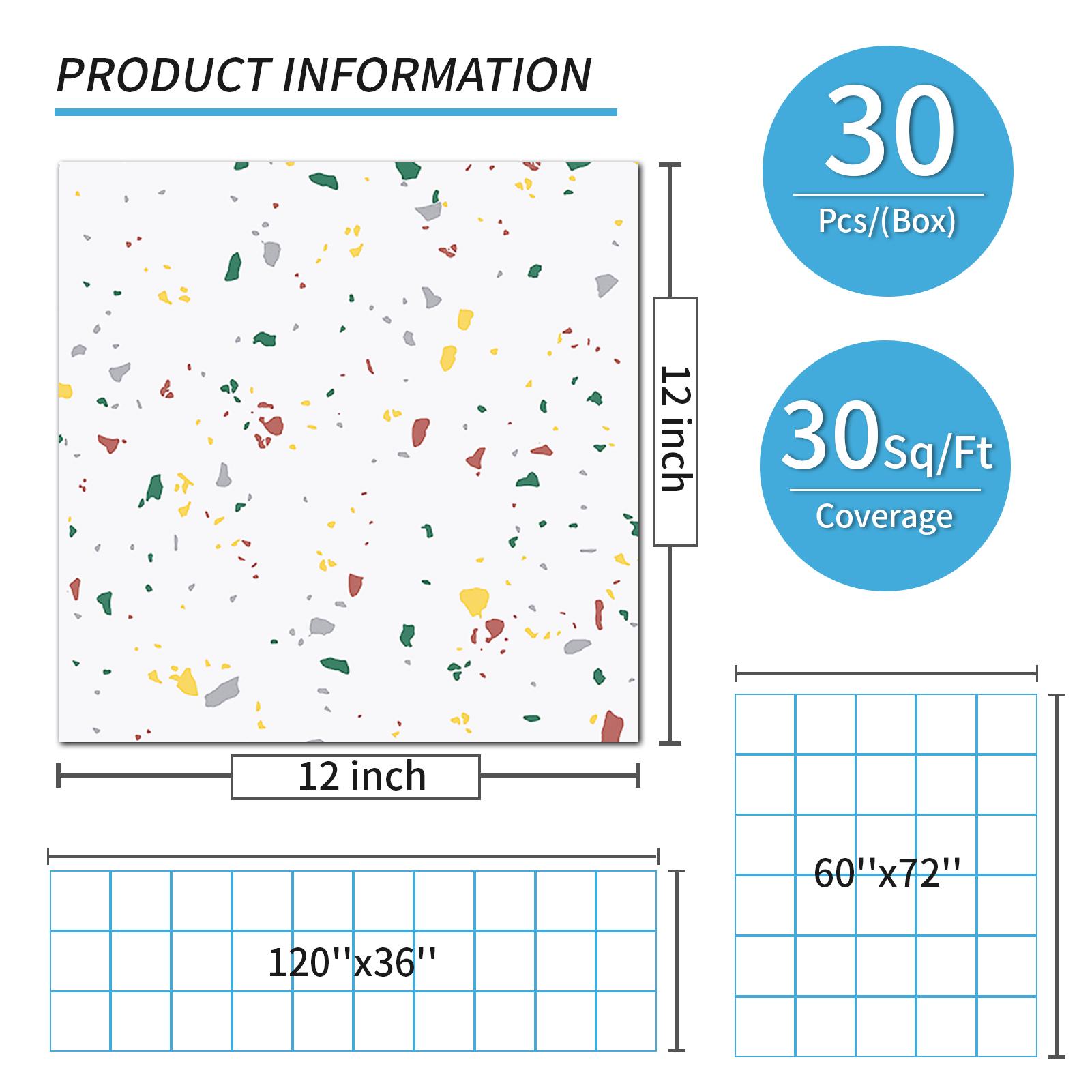 A43528NA30-Art3d Peel and Stick Floor Tile, 30-Pack 12 x 12in. Covers 30 Sq.ft, Waterproof Vinyl Flooring Tiles Self Adhesive for Kitchen, Bathroom & Bedroom - Modern Terrazzo