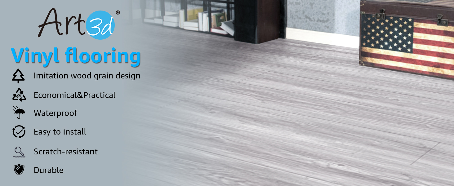 A43701NA10-Art3d 15 Sq.ft Peel and Stick Floor Tiles, 10Pcs Luxury Vinyl Plank Flooring Wood Look, 36" × 6" Adhesive and Waterproof Tile Sticker for Bedroom, Living Room, Kitchen, Gray